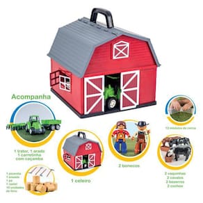 Fazendinha 8192 Poliplac Fazendinha 8192 Poliplac . A Fazendinha Poliplac é ideal para brincar e aprender de forma lúdica a rotina da fazenda. O Celeiro grande em estilo americano comporta todos os itens da fazenda em seu interior e possui abertura de portas, janelas e telhado. A Fazendinha é composta por : 1 celeiro, 2 bonecos fazendeiros, 1 trator, 1 arado, 1 carretinha, 4 ferramentas manuais, 2 vaquinhas, 2 cavalos, 2 bezerros, 2 cochos, 12 módulos de cerca e 10 rolos de feno. Desenvolve a coordenação motora. Estimula a concentração e a imaginação. Amplia a capacidade de percepção. Desenvolve a interação com o meio. Ideal para atividades individuais ou em grupo.