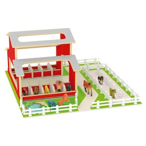 01 Estábulo em madeira MDF (montado e decorado, com pintura atóxica e acabamento em serigrafia)