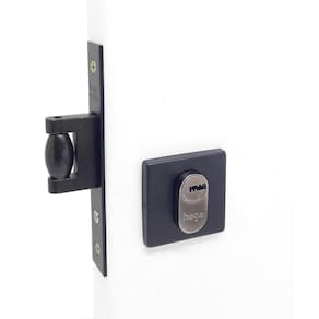 Fechadura HAGA com trava rolete, ideal para portas de bater externas. Possui design robusto, acabamento moderno em resinado preto.