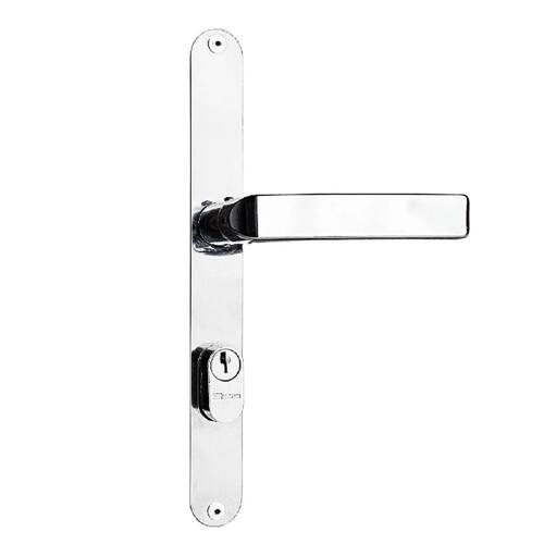 - Composição: Aço Carbono - Testa, Contra Testa e Parafusos; ZAMAC - Maçaneta, Lingueta, Trinco, Canhão e Corpo do Cilindro; Aço Inox- Espelho; Latão - Chave e Pinos do Cilindro.