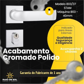 Fechadura 803/37 Roseta Quadrada Externa Inox Stam Polida Fechadura 803/37 Roseta Quadrada Externa Inox Stam Polida Segurança e Elegância em um Único Produto A fechadura 803/37 Roseta Quadrada da marca Stam é sinônimo de qualidade, segurança e design inovador. Com a tradição de uma marca líder no mercado brasileiro de fechaduras e cadeados, este modelo se destaca pela sua confiabilidade e durabilidade. Ideal para quem busca segurança sem abrir mão da estética, essa fechadura é resistente ao desgaste e adequada para áreas de médio trânsito. Diferenciais: Possibilidade de instalação em ambos os lados da porta, graças à reversão do trinco. Indicada para portas de madeira com espessura entre 2,5 cm e 3,5 cm. Composição em materiais de alta qualidade: Aço ABNT 1010/1020, Zamac, Aço Inox, Latão e Plástico de Engenharia. Design elegante com Roseta em Aço Inox, Maçaneta em Zamac 5 e Testa/Contra Testa em Aço Inox 430. Pode ser instalada em ambos os lados da porta Direito / Esquerdo Mais sobre o Produto: Norma 14913, Máquina 803. Distância de Broca de 40 mm. Aplicação Externa, indicada para portas externas ou outras aberturas que necessitem de segurança. Segredos: 1000, proporcionando maior proteção. Tráfego Médio e Segurança Média. de 12 meses contra defeitos de fabricação pela Stam. Dicas de Uso: Para garantir a máxima eficiência da fechadura Stam 803/37, mantenha-a sempre lubrificada e realize a manutenção periódica, verificando o funcionamento do trinco e dos segredos. Utilize apenas acessórios e ferramentas adequadas para a instalação, seguindo as instruções do fabricante. Ficha Técnica: Marca: Stam Peso: 0.8 kg Categoria: Fechadura : 12 meses Material: Aço ABNT 1010/1020, Zamac, Aço Inox, Latão, Plástico de Engenharia Acabamento: Roseta em Aço Inox, Maçaneta em Zamac 5 Norma: 14913, Máquina: 803 Aplicação: Externa Segredos: 1000 Tráfego: Médio Segurança: Média Marca: Não Informado