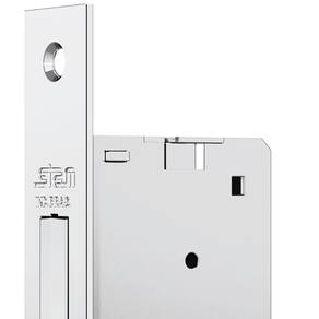 8) Coloque a fechadura, fixando a testa na porta com os parafusos.
