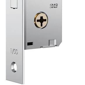 8) Coloque a fechadura, fixando a testa na porta com os parafusos.
