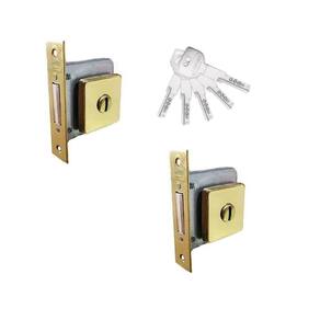 A Jogo Fechadura Auxiliar Trava Segurança Dourada Imab Dupla acompanha 5 chaves tecnoponto numeradas, com código. Essa fechadura está disponível tanto individualmente 2000 quanto em dupla 2200 , sendo que as fechaduras duplas possuem o mesmo segredo.