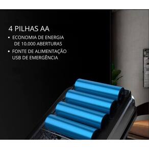 Material: Zamak / Aço Tipo instalação: Embutida Espessura de porta: 35 a 50mm Broca padrão: 60 a 70mm Regulagem para encaixe do miolo Alimentação: 4 pilhas AA Não acompanha o produto