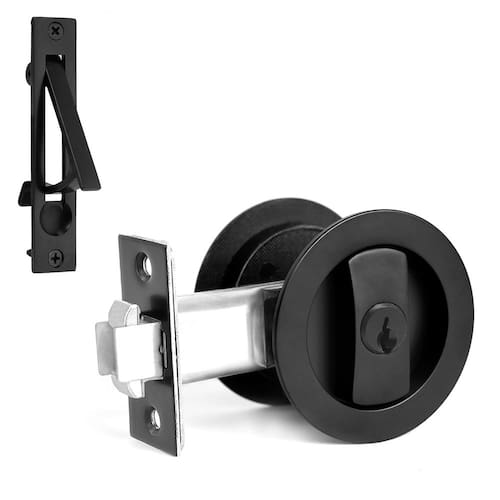 Dontay Fechadura de porta de bolso, indicadores codificados por cores, trava de maçanetas de privacidade (cama/banho), fundo de 6,5 cm, ferragens para porta de espessura de 3,5 a 6,5 cm - Puxador de borda de porta de bolso: extraia facilmente a porta de bolso de dentro da parede. - Design universal: alavanca grande para facilitar o uso por todos, adequada para portas canhotas ou destros. - Sem fricção: a fechadura da porta está embutida no design, alinhada com o painel da porta. Cabe perfeitamente, cabe na moldura da porta sem esfregar. - Operação suave: Feito de liga de aço com um acabamento galvanizado resistente à corrosão, esta fechadura é resistente e elegante. - Fácil instalação: Inclui todas as ferragens para portas de várias espessuras e instruções, garantindo um processo de instalação simples e rápido.