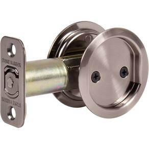 - Função (passagem): As fechaduras de porta de bolso estilo passagem são usadas para proporcionar a transição de um cômodo para outro. Ambos os lados do hardware estão sempre livres e não têm mecanismos de travamento. Perfeito para corredores e portas de armários.