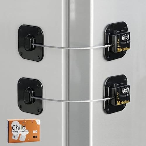 - Material de alta qualidade: A trava de segurança do refrigerador é feita de ABS+aço inoxidável+material de liga de zinco de alta qualidade, o cabo de aço multifio é torcido e espessado, é forte e resistente ao desgaste, adequado para qualquer cena.