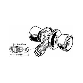 Acabamento de cetim cromado, portas de entrada para a parte frontal e traseira, 2 – 3/8 " testa, redondo unidade no Trinco, travado de fora por chave, travado a partir do interior empurrando pega em e virar para a direita.