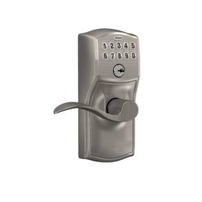 - Este item é Schlage FE595VCAM619ACC Camelot teclado acento maçaneta fechadura da porta, níquel acetinado