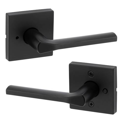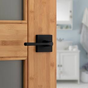 Kwikset Maçaneta de porta de privacidade interna Lisbon com fechadura, maçaneta de porta para banheiro e quarto, preto fosco reversível sem chave maçaneta de porta