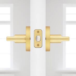 Alavanca de porta Kwikset Halifax Interior Privacy com fechadura, alavanca de porta para banheiro e quarto, alavanca de porta com fechadura reversível sem chave em latão acetinado, com proteção Microban