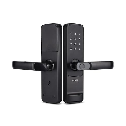FUNCIONALIDADES AVANÇADAS: • 6 formas de desbloqueio – Impressão digital, senha PIN, tag magnética, chave mecânica, senha dinâmica e senha temporária. • Controle remoto pelo app – Gere senhas únicas ou temporárias para visitantes de forma rápida e segura. • Abertura bilateral – Instalação prática e funcional, adaptando-se a diferentes tipos de porta. • Compatibilidade com assistentes virtuais – Controle por voz com Alexa e Google Assistente. • Alta segurança – Taxa de rejeição de =0.001% e leitura ultrarrápida em até 0,5s.