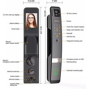 Câmera Infravermelha 3D com sensor de 1,2MP para reconhecimento facial preciso. Bateria de Lítio Recarregável 5000mAh – Autonomia de até 3 meses por carga. Alarme Integrado – Avisa sobre tentativas de arrombamento. Modo de Privacidade e Passagem – Controle total sobre o acesso à sua casa. Consulta de Registros – Verifique quem entrou e saiu pelo aplicativo. Instalação Fácil – Compatível com portas de madeira, aço inox, bronze, portas duplas e de segurança. Suporte para 8 Idiomas – Personalize de acordo com sua necessidade. Fonte de Alimentação de Emergência – Caso a bateria acabe, utilize um power bank via USB-C. Compatível com Abertura para Direita e Esquerda.