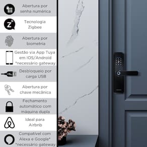 Fortezza fze01: design único,fechamento automático, inteligente e perfeita para sua casacom o intuito de oferecer mais segurança e praticidade aos usuários, o modelo inteligente zigbee de embutir da fortezza, foi desenvolvida com o padrão similar ao brasileiro facilitando a instalação e o gerenciamento pelo aplicativo.Praticidade para residência ou escritório a fechadura eletrônica inteligente com tecnologia zigbee e oferece cinco tipos de acessos: biometria, cartão por aproximação, senhas personalizáveis e aplicativo nessesário hub de autoamação , além da chave mecânica.Informações técnicasmarca: fortezzamodelo: fze01grcor: pretatipo de porta: madeira ou metal.Espessura indicada: 35 a 50 mm.Tipo de fechadura: eletrônica com maçaneta. Ideal para ser instalada substituindo a fechadura mecânica já existente na porta.Lado da porta: reversível.Modos de abertura: senha, chave, tag, biometria e aplicativo.Abertura de emergência: chave mecânica e usb carregador portátil .Fechamento: automatico com travamento após alguns segundos na posição fechada;chaves: acompanha 2 mecânicas.Cadastro de até: 100 biometrias e 40 senhas.Capacidade máxima de usuários: 9 de adm, 31 de uso diário.Alimentação: 4 pilhas aa não inclusas ;autonomia das pilhas: 8 a 10 mesesalarmes: pilha fraca e acesso não autorizado.Modo privacidade: sim, nessesário hub wifi vendido separadamentefunção senha anti-espião: sim, nessesário hub wifi vendido separadamentefunção senha temporária: sim, nessesário hub wifi vendido separadamenteregistro de acessos: sim, nessesário hub wifi vendido separadamenteenvio de chaves virtuais à distância: sim, nessesário hub wifi vendido separadamenteenvio de senhas à distância permanente, temporária, recorrente e única :sim, nessesário hub wifi vendido separadamentemáquina: 5572garantia: 12 meses