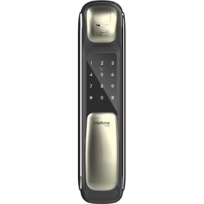 A fechadura digital FR 630 da Intelbras oferece múltiplos métodos de acesso, incluindo senha, cartão RFID 13,56 MHz, biometria digital e chave mecânica de emergência. Com design moderno e acabamento em alumínio escovado, é indicada para ambientes residenciais e comerciais que buscam segurança e praticidade. O teclado touch sensível ao toque possui iluminação para facilitar o uso em ambientes escuros, e a função anti-travamento bloqueia o acesso após tentativas incorretas para aumentar a segurança. Compatível com portas de 35 a 50 mm de espessura, a FR 630 é fácil de instalar, substituindo fechaduras convencionais sem complicações. Suporta cadastro de até 100 usuários entre senhas, digitais e cartões. Alimentada por 4 pilhas AA, apresenta autonomia de até 12 meses, com alerta sonoro e visual para troca. A entrada para fonte 9 V DC oferece operação em caso de emergência, mantendo o acesso sempre disponível. EspecificaçõesAcesso por senha, cartão RFID, biometria e chave mecânicaTeclado touch com iluminaçãoCapacidade para até 100 usuáriosCompatível com portas 35–50 mmAlimentação por 4 pilhas AA e entrada 9 V DC