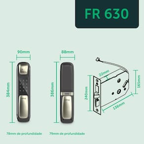 Modelo do produto - FR 630 Cor - Preto Quantidade pacote - 01 Comprimento do produto - 7.9 cm Largura do produto - 9 cm Altura do produto - 38.6 cm Peso do produto - 3.800 Kg Modo de Acesso - Biometria, Chaveiro de aproximação, Senha, Chave