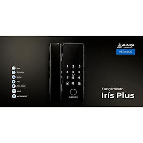 Fechadura Digital Iris Plus sobrepor para Porta de Vidro Preto Fosco Aliança