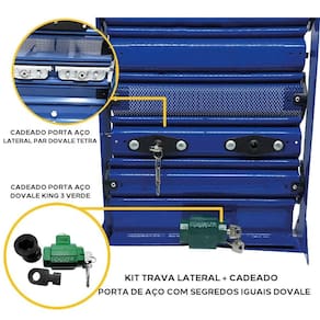 O Kit Trava Lateral + Cadeado Solo para Porta de Aço com segredos iguais da foi desenvolvido para proporcionar máxima segurança e praticidade. Com esse conjunto, você terá 2 travas laterais e 1 cadeado solo, todos com o mesmo segredo, facilitando o uso e possibilitando o acesso com uma única chave.