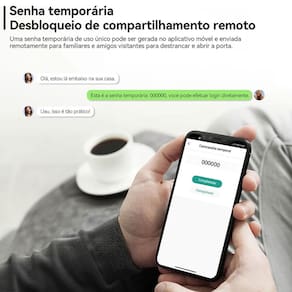 Este dispositivo pode ser conectado à rede Wi-Fi doméstica (2,4 GHz), permitindo que você o controle remotamente através do seu smartphone (aplicativo Tuya). Se alguém tocar a campainha, você receberá uma notificação no seu celular e poderá até mesmo destrancar a porta remotamente através do seu smartphone.