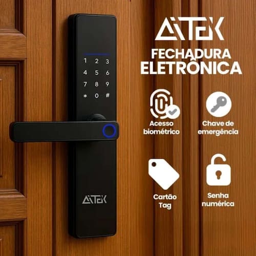 Fechadura eletrônica senha cartão chave Fechadura digital A fechadura eletrônica inteligente digital biométrica sigma-fe05 oferece máxima segurança e praticidade com tecnologia avançada e design moderno. Ideal para residências, escritórios e estabelecimentos comerciais, conta com múltiplos métodos de desbloqueio: impressão digital de alta precisão, senha numérica, cartão rfid e chave mecânica de emergência. O teclado touchscreen é intuitivo e resistente, possui trava automática, alarme contra tentativas de arrombamento e aviso de bateria fraca. Compatível com portas de madeira ou metal de 30mm a 60mm, apresenta acabamento premium na cor preta e construção robusta para maior durabilidade. Conteúdo da embalagem 1 unidade externa da fechadura 1 unidade interna da fechadura 1 corpo de fechadura 1 contratesta 1 parte interna da contratesta 2 cartões de proximidade rfid 2 chaves mecânicas de emergência Kit de instalação completo Manual de instruções Características Múltiplos métodos de desbloqueio: biometria, senha numérica, cartão rfid e chave mecânica Trava automática para maior segurança Alarme de segurança e aviso de bateria fraca Entrada micro usb para alimentação de emergência Teclado touchscreen resistente a riscos e desgaste Instalação versátil para portas de madeira ou metal Acabamento moderno e sofisticado na cor preta Alta durabilidade e resistência Especificações Modelo: sigma-fe05 Cor: preto Alimentação: 4 pilhas aaa não inclusas Requisitos da senha numérica: 6 a 12 dígitos Fonte de emergência: usb 5v power bank Compatibilidade de porta: espessura entre 30mm e 60mm Composição: liga metálica, plásticos e componentes eletrônicos Marca: Não Informado