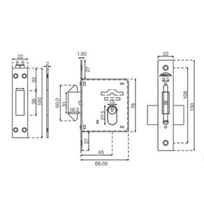 Espessura da porta: mínima 25mm e máxima 35mm Conjunto: 1006 Linha: trava expansiva Material: zamak e inox Acabamento: inox polido