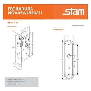 Fechadura Externa Oxidado 1801/21 Stam Tambor Cilindro A Stam é uma marca brasileira, líder no segmento de fechaduras e cadeados. Distingue-se pela criação de fechaduras confiáveis e de qualidade, com designs inovadores e acabamentos superiores. Segurança para todos os tipos de aberturas. DESCRIÇÃO: A Fechadura Stam 1820/21 Espelho Oxidado Broca 40mm é a escolha perfeita para quem busca qualidade e segurança para sua porta. Fabricada pela renomada marca Stam, essa fechadura possui acabamento em espelho inox polido, que garante um visual moderno e sofisticado. Com uma distância de broca de 40mm, essa fechadura é ideal para portas de madeira , proporcionando um encaixe perfeito. O material da maçaneta é zamak cromado, resistente e durável, garantindo um funcionamento suave e sem transtornos. A fechadura Stam 1801/21 conta com testa e contra testa em ferro, o que reforça sua resistência e segurança. Essa fechadura é indicada para portas com espessura entre 25mm e 40mm, oferecendo versatilidade na instalação. Seu nível de corrosão é 1, o que significa que ela é altamente resistente mesmo em ambientes úmidos. Com um tráfego leve, essa fechadura é perfeita residencias ou pequenos estabelecimentos comerciais. Sua segurança é considerada média, garantindo a tranquilidade necessária para o ambiente. Com a Fechadura Stam 1801/21 Espelho Oxidado Broca 40mm, você terá a segurança e funcionalidade necessárias para a porta do sua abertura. Não deixe de garantir a qualidade e durabilidade que apenas a Stam pode oferecer. 1. Essa fechadura pode ser instalada em portas de madeira Sim, essa fechadura é especialmente projetada para portas de madeira. 2. Qual a espessura máxima da porta que essa fechadura suporta Essa fechadura é indicada para portas com espessura entre 25mm e 40mm. 3. A fechadura é resistente à corrosão Sim, o nível de corrosão dessa fechadura é 1, o que significa que ela é altamente resistente mesmo em ambientes úmidos. 4. Essa fechadura é segura Sim, essa fechadura possui nível de segurança média, garantindo a proteção necessária para o ambiente. Não deixe de adquirir a Fechadura Stam 1801/21 Espelho Oxidado Broca 40mm e tenha a de qualidade e segurança para a sua porta. Especificações: Fabricante: Stam Norma: 14913 Máquina: 823 Distância de Broca: 40 mm Aplicação: Externa e Interna Tráfego: Leve - Segurança: Média Acessórios: Tranqueta, chave reserva, maçanetas, espelhos, contra testa Composição: Aço ABNT 1010/1020, Zamac, Aço Inox, Latão, Plástico de Engenharia Espelho: Aço ABNT 1010/1020 Maçaneta: Zamac 5 Testa: Aço Inox 430 Contra Testa: Aço Inox 430 Linha: Novara 1801 Nível de Corrosão: 1 Chave fixa no espelho de 1 lado Acabamento: Oxidado Polido Espessura da Porta: 25mm até 40mm Somos uma empresa com tradição desde 1979 no mercado, voltada para a construção civil, tecnologia e segurança. Acreditamos que a tecnologia associada a construção civil pode facilitar a sua vida. Pode tornar sua casa mais confortável, mais segura e sustentável.