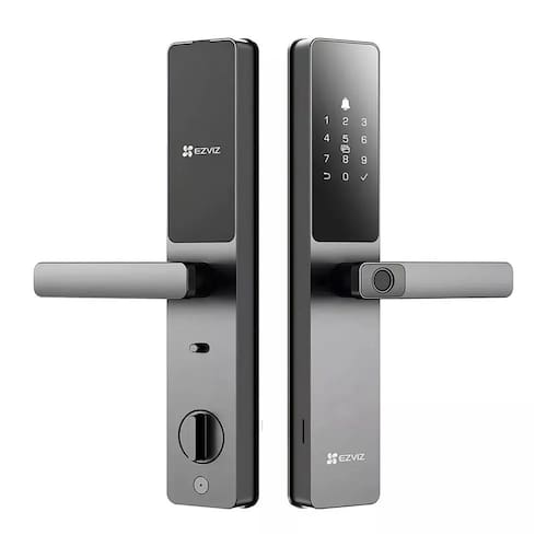 Método de destravamento: Impressão digital, senha, cartão de proximidade, chave mecânica, chave bluetooth via aplicativo EZVIZ, códigos temporários, destravamento remoto.