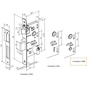 Código: bz1300000xp00 Descrição Produto: FECH BANH 1300 INX XP AVULSO Acabamento: INOX POLIDO - XP Material:aco INOX Descrição Técnica: Fechadura de embutir para portas de bater, de madeira ou metálicas, broca de 40 mm tipo I , distância entre os eixos da maçaneta e cilindro de 53 mm, falsa testa em AÇO INOX com180 mm x 20 mm com canto reto ou arredondado e trinco em ZAMAC com sistema simplificado de reversão. Recolhimento através da chave e o desbloqueio da chave funciona, mesmo, com outra inserida no lado oposto.