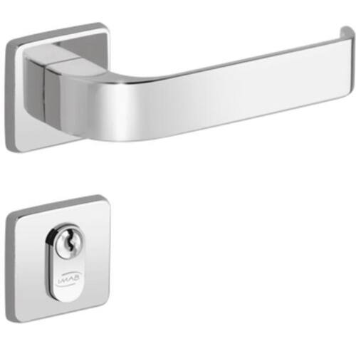 Conjunto de Fechadura da linha Basic do modelo Odin da marca IMAB. Material com acabamento em Cromado e composto de Roseta em Aço Inox. Fechadura para porta externa com distância broca 40 mm tipo I, classificado conforme norma ABNT NBR.
