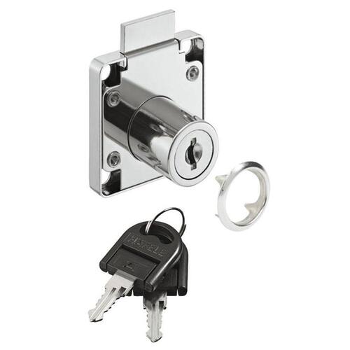 - fixação: versão para gaveta - material: liga de zinco - versão: com cilindro de placas - montagem: versão para gaveta - número de pinos: com diferentes combinações de chaves - cor/acabamento: cromo, latão - entrada d: 24 mm - acabamento: latão - aplicação: para produção de móveis em série - cylinder shape: cilindro redondo - do cilindro: 19 mm - dimensão do avanço da lingueta: 8 mm
