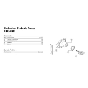 Fechadura P/ Porta De Correr 19 X 22Mm Cromado - Hardt - 19 Vendas nos últimos 60 dias marca: HDT modelo: F4010CR acabamento: Cromado tipo de trinco: Partido tipo de fechadura: Porta de Correr tipo de instalacao: De embutir material da caixa: Aço quantidade de chaves: 2 inclui macaneta: Não Marca: Não Informado Ean: 7908000303561