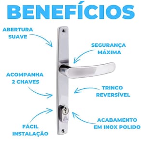 DIFERENCIAIS - Design Moderno: Acabamento em aço inox polido cromado para um toque sofisticado. - Alta Durabilidade: Resistente à corrosão e desgastes em condições climáticas adversas. - Compatibilidade Universal: Adapta-se facilmente a diferentes estilos de portas externas.