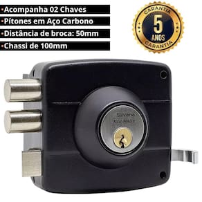Com acabamento preto sofisticado, a fechadura se destaca pela qualidade dos materiais e pelo desempenho duradouro. Fabricada com aço reforçado e componentes de alta resistência, ela foi projetada para suportar as condições do clima e o uso constante, mantendo sua integridade e funcionalidade por mais tempo.