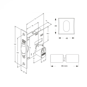 Marca: Stam Modelo: 1005 Acabamento: Black Rosetas: Quadradas Altura: 122 mm Largura: 22 mm Profundidade: 71 mm Distância entre furos: 73 mm Dimensão da roseta: 49 x 49 mm Espessura do cilindro: 18 mm Distância total do conjunto: 85 mm