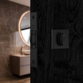 Marca: Stam Modelo: 1025 – Pivotante Tipo: Fechadura para banheiro Uso indicado: Portas internas pivotantes Acabamento: Black Rosetas: Quadradas, sem parafusos aparentes Máquina: 45 mm Material: Alta resistência e durabilidade Maçaneta: Não possui (fechadura sem maçaneta)