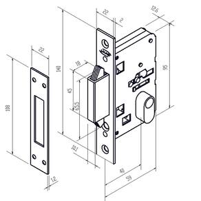 fechadura lingueta expansiva banheiro tipo bico de papagaio, com dupla trava e lingueta conjugada, para portas de correr e de bater, com espessura de 25 a 35 mm e broca de 40 mm. Com caixa de profundidade de 59 mm mais estreita e caixa da fechadura blindada zincada, propicia maior proteção contra corrosão, poeira, e resíduos de madeira. A chapa testa e a contratesta são produzidas em aço inox, enquanto a lingueta e o mecanismo da trava são em aço estampado super-reforçado, com acabamento cromado, além do mecanismo interno é feito com proteção zincada contra corrosão.O acionamento com tranqueta é do tipo botão, em zamak, com utilização de chave de emergência.