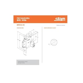 Fechadura porta de correr e bater stam 1006 rosê asa de avião redonda 45 mm com cilindro miolo tambor máquina: 1006 distância de broca: 45 mm aplicação: externa segredos: 3100 acessórios: chave, roseta, cilindro, contra testa cilindro: bi-partido de pinos composição: aço abnt 1010/1020, zamac, aço inox, latão, plástico de engenharia roseta: aço abnt 1010/1020 testa: aço abnt 1010/1020 contra testa: aço abnt 1010/1020 linha: porta de correr embalagem: caixa garantia: 1 ano produto stam
