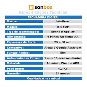 A Fechadura Smart De Sobrepor Preta Com Senha Numérica Intelbras IFR1001 garante o máximo de conforto e segurança ao acessar suas portas. A IFR 1001 é um modelo de sobrepor, que possui senha e aplicativo como método de abertura. Compatível com Alexa e Google Assistent.