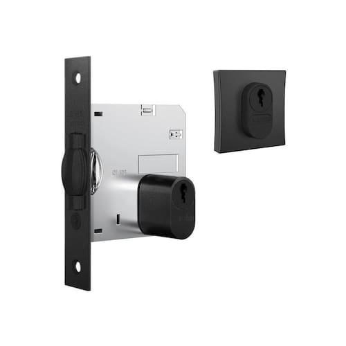 Fechadura Residencial Rolete Stam, para Porta Pivotante para uso com Puxador (Puxador Não incluso). Especificações: - Fabricante: Stam - Broca: 45mm (Distância até o miolo) - Acabamento: Roseta Quadrada Zamak Preto Fosco - Testa e Contra Testa Ferro com acabamento Grafite - Trafego Médio - Nível de Corrosão: 1 - Segurança: Média - Para portas com espessura entre 25mm até 45mm - Cilindro com 65mm de comprimento - Acompanha 2 chaves