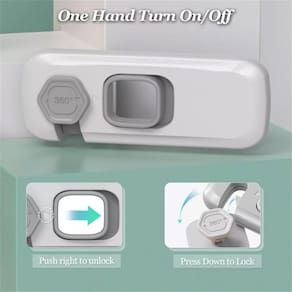 Sem necessidade de ferramentas. Instale facilmente a trava de armário à prova de bebê com fitas adesivas dupla face. Basta remover a capa do adesivo e colar a trava de segurança na superfície que você quiser.
