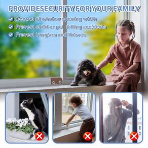 - ?Fácil de instalar? Nossa trava de janela oferece duas opções de montagem para diferentes larguras de trilho de janela. Cada conjunto de travas de janela vem com uma chave sextavada e uma chave vertical. Ambos os métodos são fáceis de instalar. Sem necessidade de ferramentas de instalação adicionais ou perfuração, instalação rápida em 3 etapas. 1. Coloque a trava em uma posição adequada. Passo 2, junta de inserção protege o trilho da janela de arranhões. Passo 3, aperte os parafusos, pronto! Você pode facilmente fixar a trava da janela em qualquer parte com a chave vertical ou chaves hexagonais, fácil de reutilizar e reinstalar.