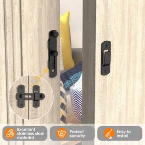 -?Segurança e privacidade?: Não se preocupe com crianças ou adultos invadindo acidentalmente, afetando o espaço de privacidade de que você precisa. A fechadura do celeiro especialmente projetada para portas em ângulo reto garante sua privacidade.