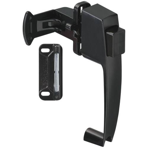 - National Hardware A trava preta com botão de pressão de 3,5 cm é projetada para tela de madeira ou metal e portas de tempestade com espaçamento de orifício de 3,5 cm.