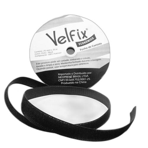 Fecho de contato tipo Adesivo 25mm macho e fêmea com 25m preto Velfix fecho de contato eco plr fem/ pto 25 metros 25mm Fecho de contato para quem procura custo-benefício. O velfix econômico agrega valor onde for utilizado. Corpreto Tamanho: rolo com 25metros de comprimento casado ou separado macho e fêmea . Vendas apenas em caixas fechadas. Largura 25mm Composição: composto de 100% poliéster. Segmento: calçadista, confecção, epi, hípico, militar, moveleiro, ortopédico, pet, uniformes profissionais, toldos Marca: Não Informado Ean: 27908660503701