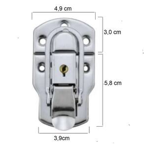 Fecho de metal externo com acabamento cromado para cases e maletas.
