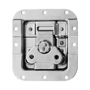 Fecho de metal médio borboleta com porta cadeado e acabamento cromado para cases e maletas.