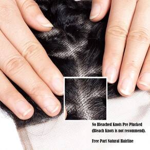 - Material do fecho de onda de água 12,5 x 12,5 cm: 100% cabelo humano virgem brasileiro 10 A não processado, parte livre de fecho de renda transparente 100 x 12 cm com nós de cabelo de bebê levemente descoloridos. Sem queda, sem emaranhado, sem cabelo rachado, sem piolhos, sem cheiro.