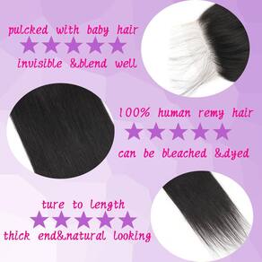 - Fecho de renda 4x4: 100% cabelo humano virgem, sem produtos químicos, fecho de nós descoloridos, fácil de colocar e remover.