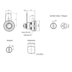 O Fecho Lingueta Reta de 45 mm, com tambor preto e chave triângulo, é ideal para armários de aço. Ele proporciona um fechamento seguro e prático das portas, garantindo mais segurança e facilidade no movimento de abrir e fechar. Além de ser utilizado em armários de aço, também é indicado para quadros elétricos. Com esse fecho, você terá a tranquilidade de manter seus armários e quadros devidamente fechados e protegidos.Observação: Chave vendida separadamente (Sku 3550)DETALHES- Fecho fabricado com corpo e porca em nylon preto- Lingueta reta em aço niquelado- Canhão em zamak niquelado com triângulo- Destinado para painéis de aço- Necessário de um recorte na porta com quadrado de 19,6 mm ou furo com diâmetro de 22,5 mm com chapa estampada sobreposta- Permite a montagem do fecho no painel sem a necessidade em desmontar a linguetaCARACTERÍSTICAS- Rotação de 90 graus- Furo 22,5 mm- Lingueta com dobra 7x 45 mm- Diâmetro do flange 28 mm- Marca SopranoINFORMAÇÕES ADICIONAISImagens meramente ilustrativasConfira outros produtos na nossa loja, onde oferecemos uma ampla variedade de ferragens para móveis e diversos modelos de ferramentas para marcenaria. Com preços acessíveis ao seu orçamento, representamos as melhores marcas do mercado e oferecemos produtos exclusivos que tornarão a fabricação do seu móvel mais fácil.Garantia: Em caso de dúvidas sobre o produto ou necessidade de orientação na sua utilização ou garantia, nossa Central de Atendimento está à disposição para ajudar.Observação: Para obter os melhores resultados com o produto, é importante sempre respeitar suas características de uso, garantindo assim uma maior vida útil e durabilidade.